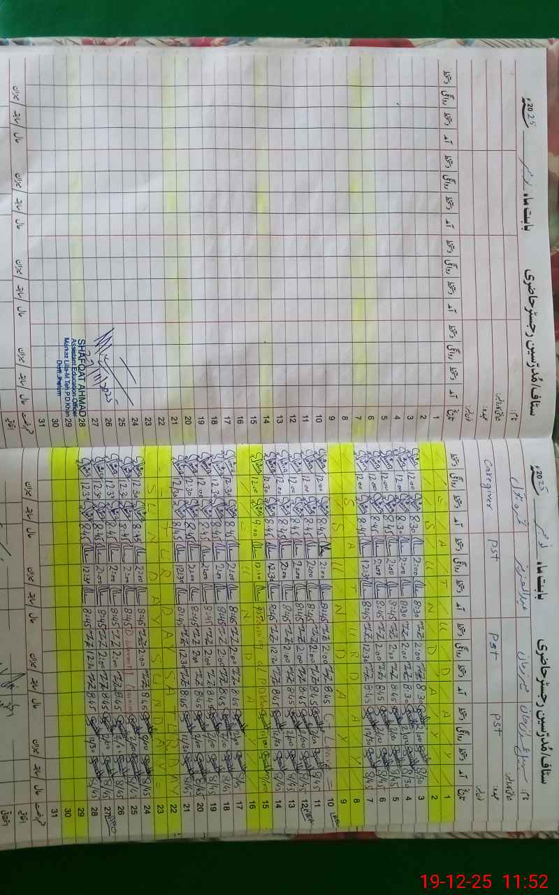 | CNIC | Full Name | Designation | R/C | Absence During Last Calender Month |