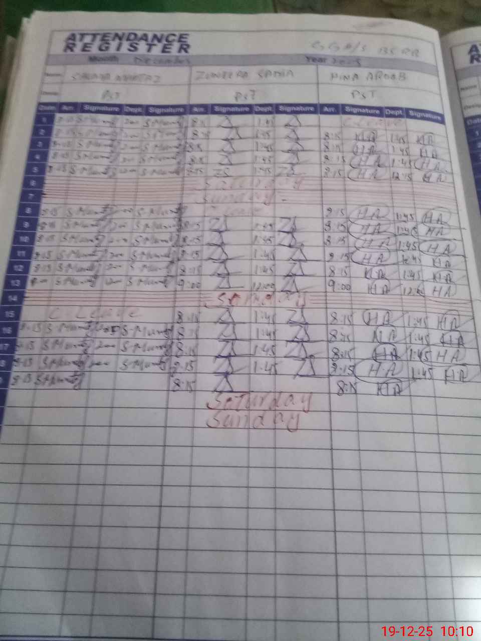 | 38**** | Sa**** Si**** Kh**** | Temporary | 1 | 0 | 0 | 0 | 0 | 0 | 0 | 0 | 1 | Casual | |