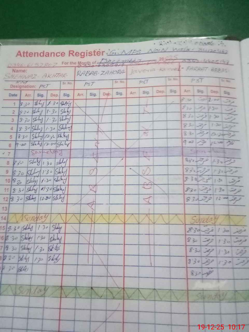 | 34**** | Ja**** Ka**** | Contract | 0 | 0 | 30 | 0 | 0 | 0 | 0 | 0 | 0 | Absent (Un-Authorized) | |