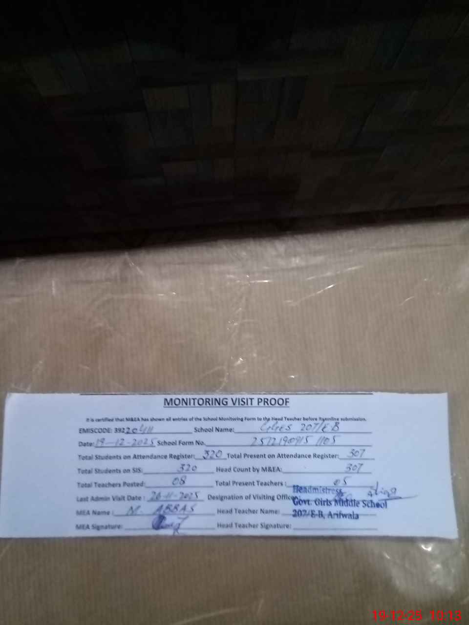 | Certified that this School was Inspected by the Undersigned MEA/DMO Today and the Information Stated Above is as Per Record. | |||||
