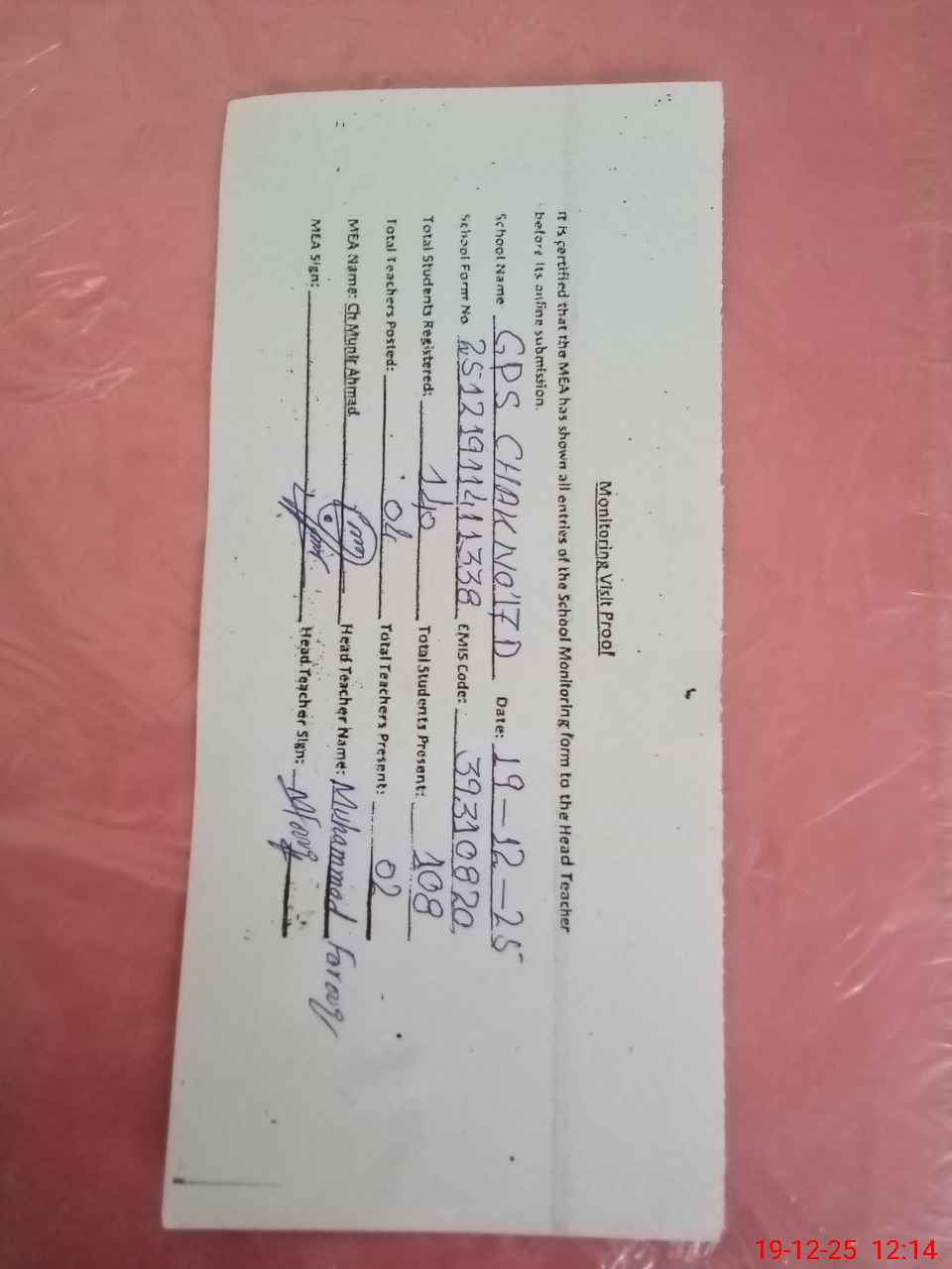 | EMIS Code: 39310820 | Name of School: GPS CHAK NO. 17-D | |||