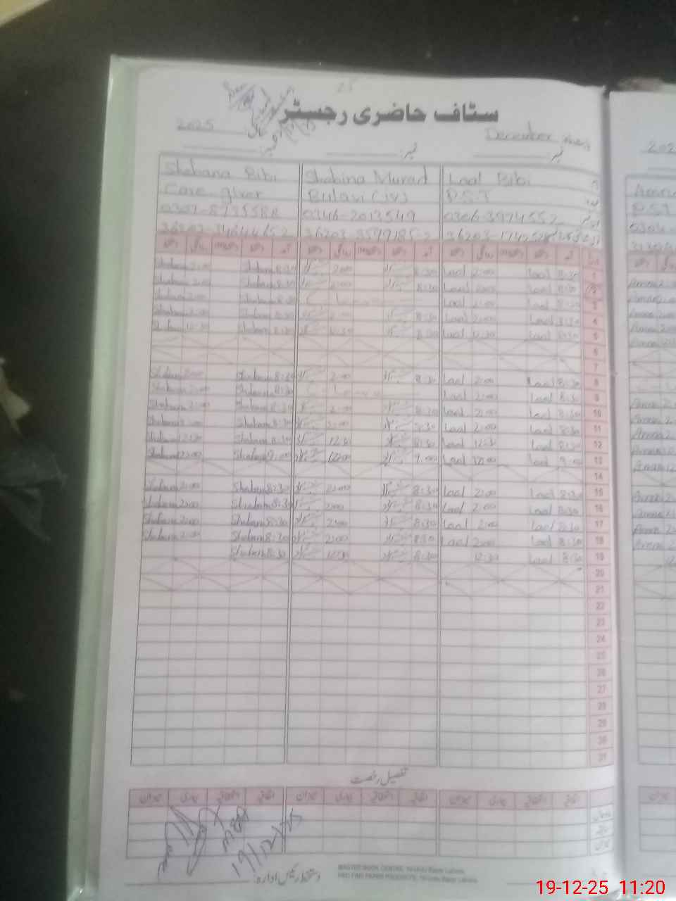 | CNIC | Full Name | Designation | R/C | Absence During Last Calender Month |