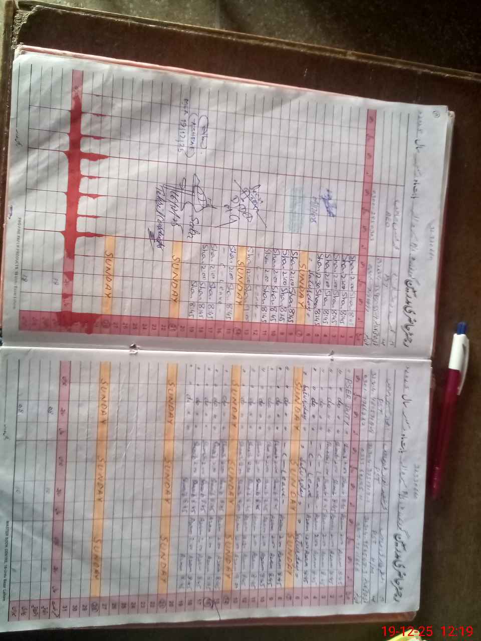 | CNIC | Full Name | Designation | R/C | Absence During Last Calender Month |