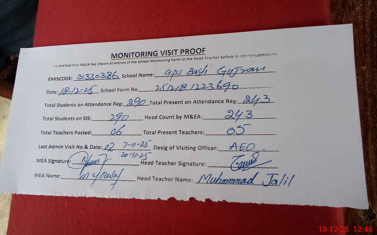 | EMIS Code: 31330386 | Name of School: GPS BASTI GUJRAN | |||