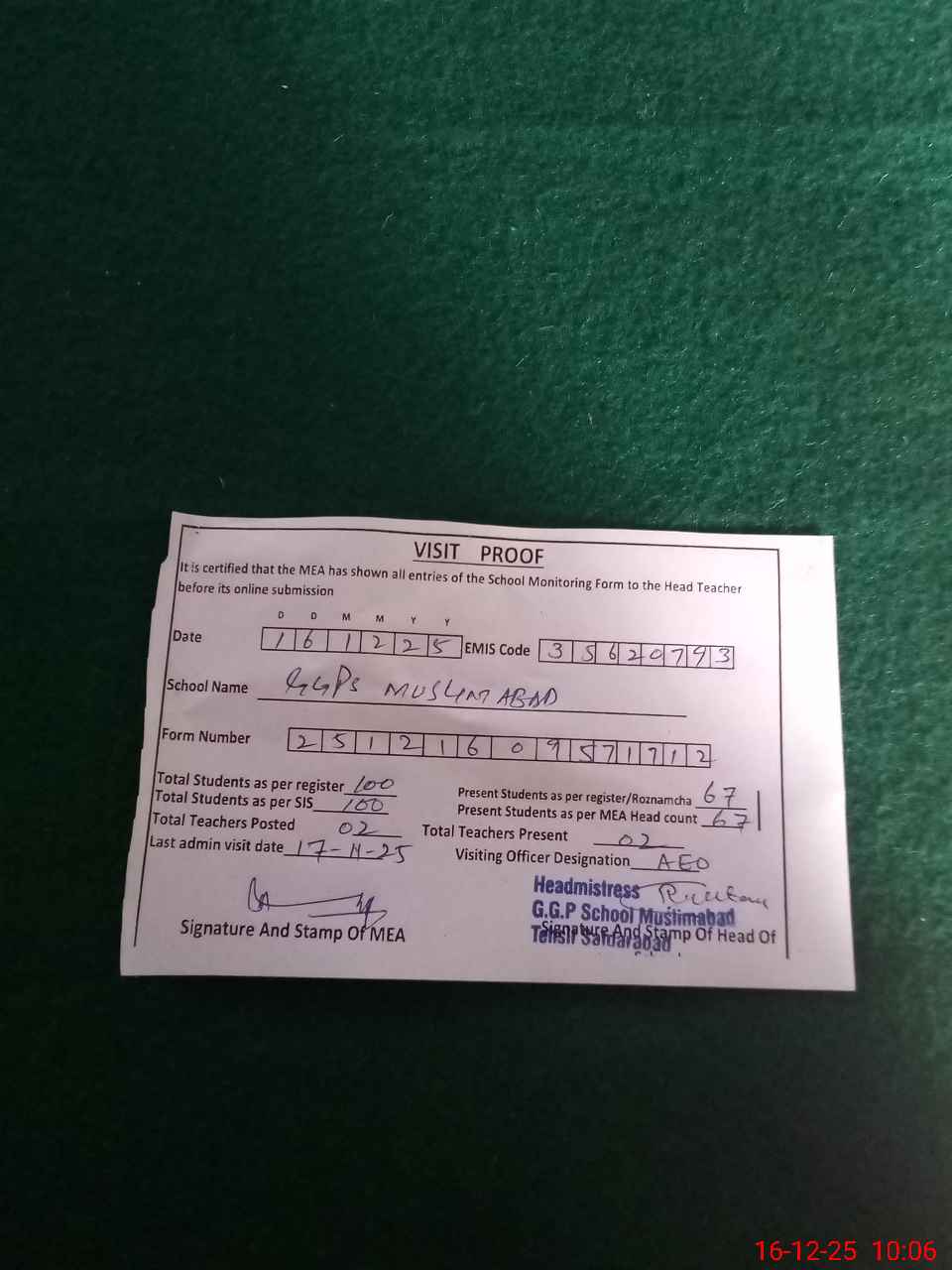 | EMIS Code: 35620793 | Name of School: GGPS MUSLIM ABAD | |||