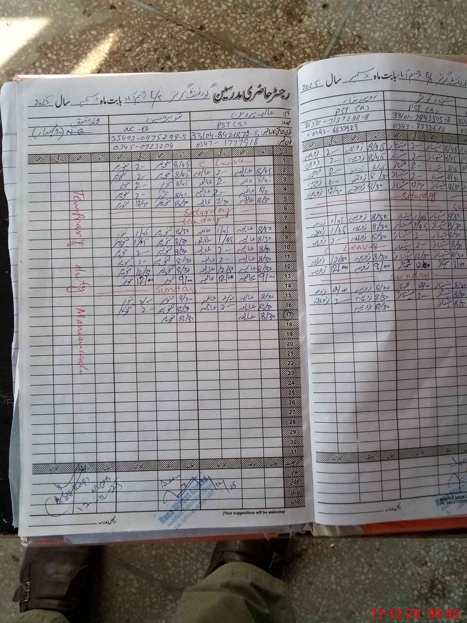 | CNIC | Full Name | Designation | R/C | Absence During Last Calender Month |
