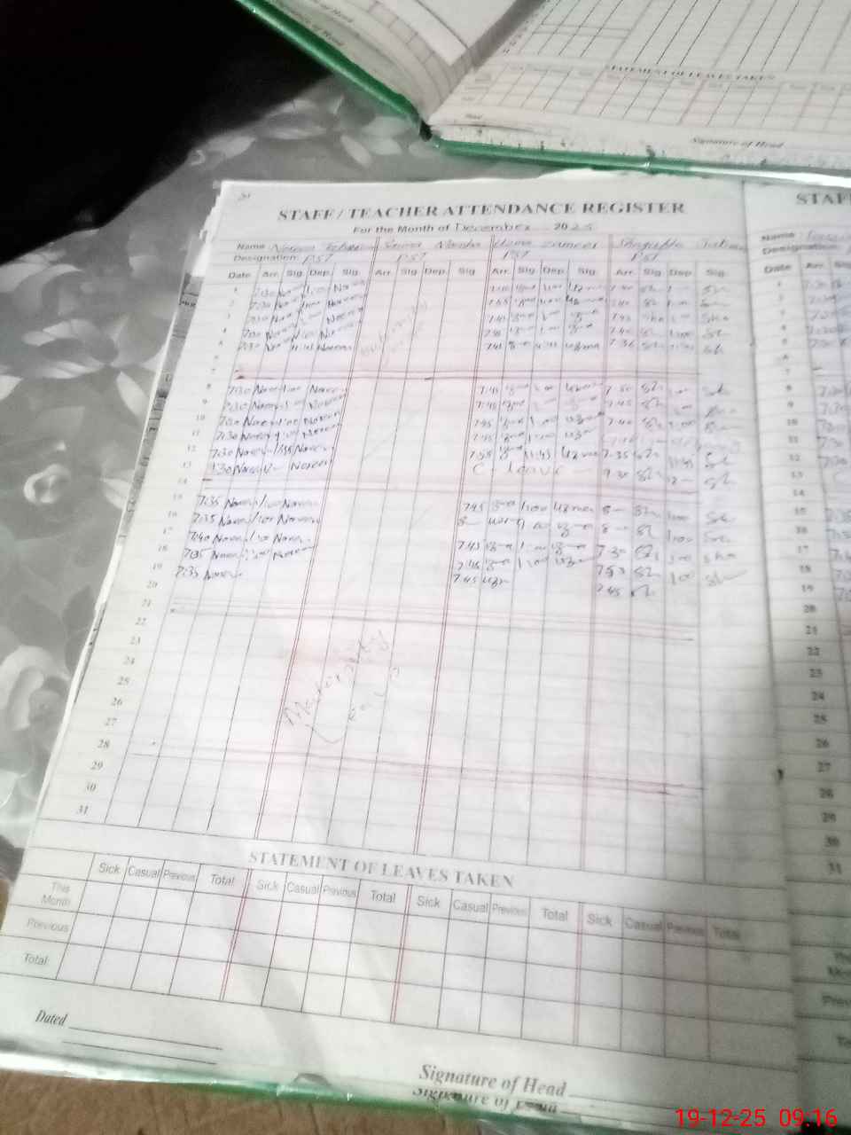 | Name: No**** Ta**** Designation: (School Headmaster's/Headmistress's) PST Phone/Cell Number: 03**** |