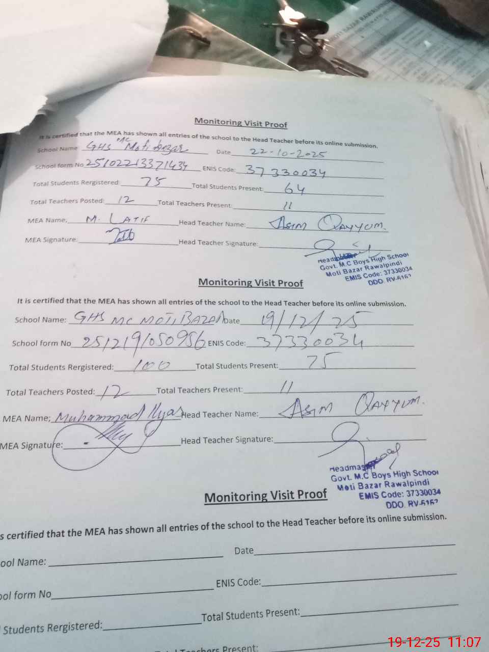 | EMIS Code: 37330034 | Name of School: GHS MC MOTI BAZAR RAWALPINDI | |||