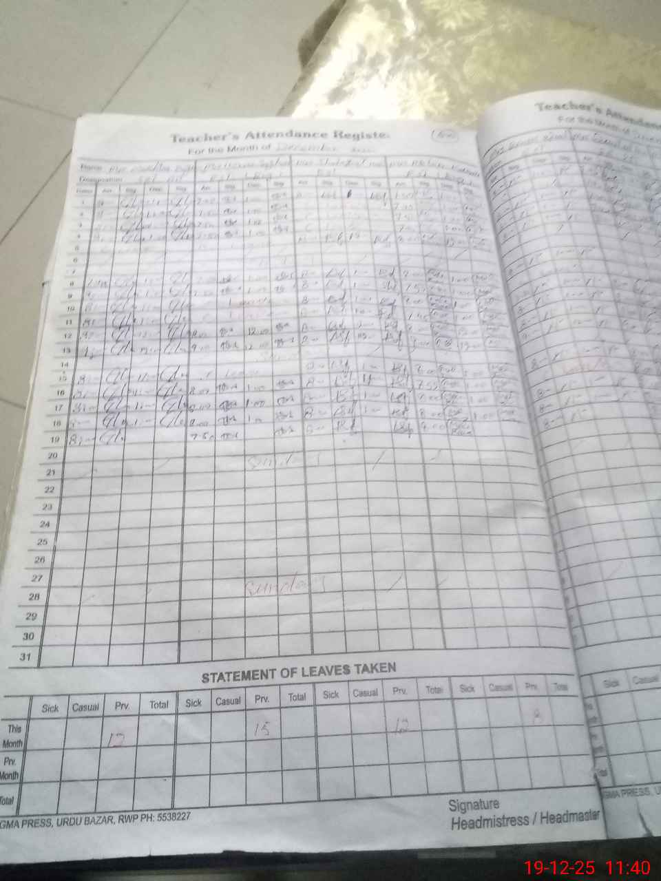 | Name: Mu**** Designation: (School Headmaster's/Headmistress's) HEAD MISTRESS Phone/Cell Number: 03**** |