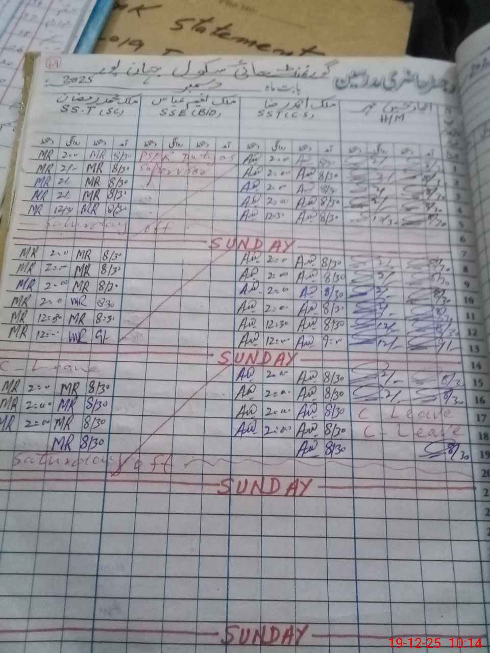 | CNIC | Full Name | Designation | R/C | Absence During Last Calender Month |