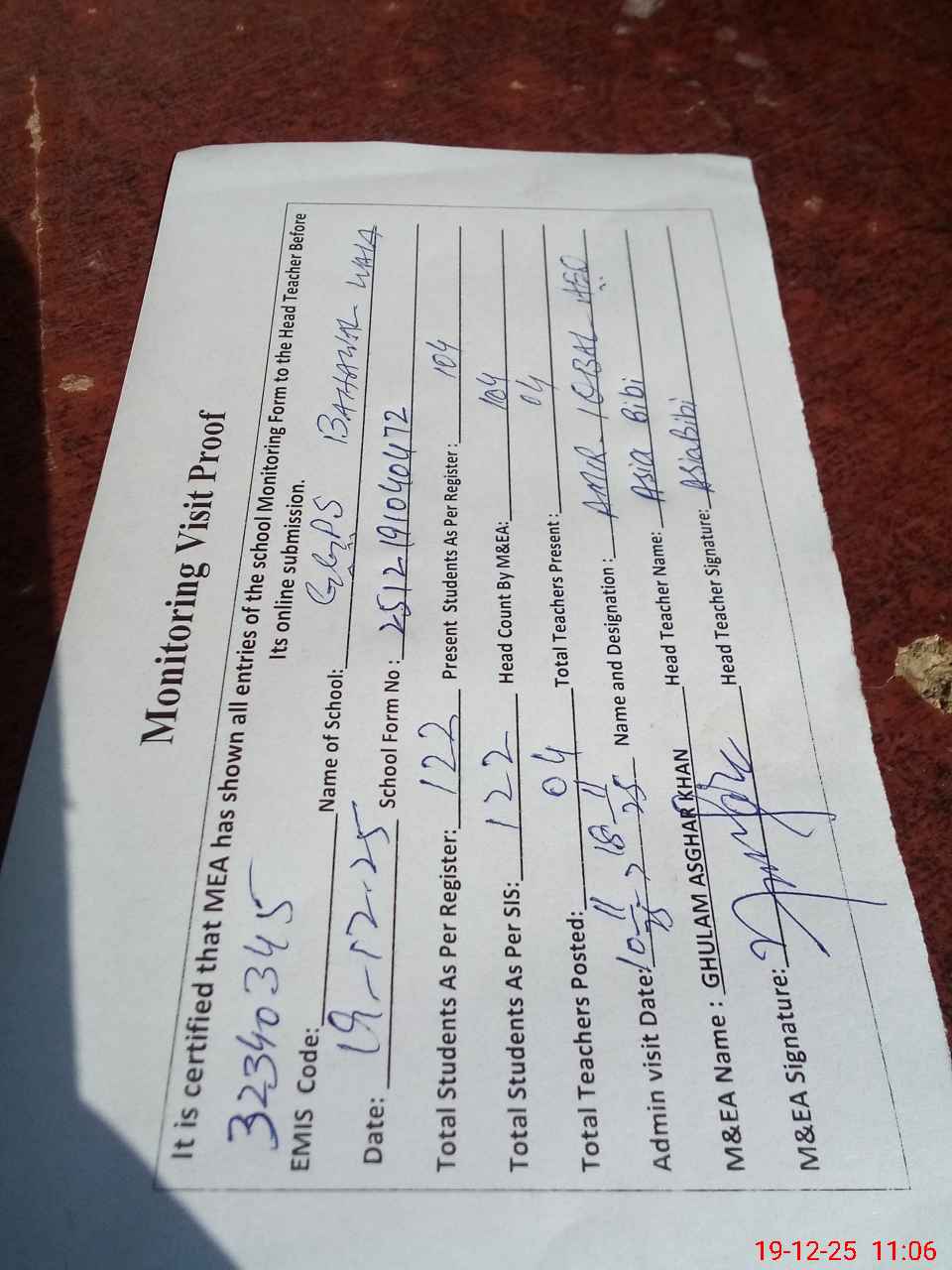 | EMIS Code: 32340345 | Name of School: GGPS BAHAWAL WALA | |||