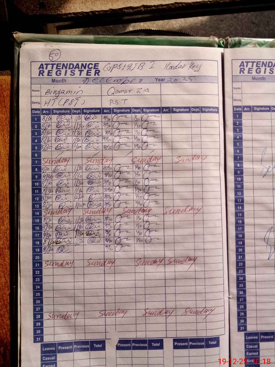 | CNIC | Full Name | Designation | R/C | Absence During Last Calender Month |