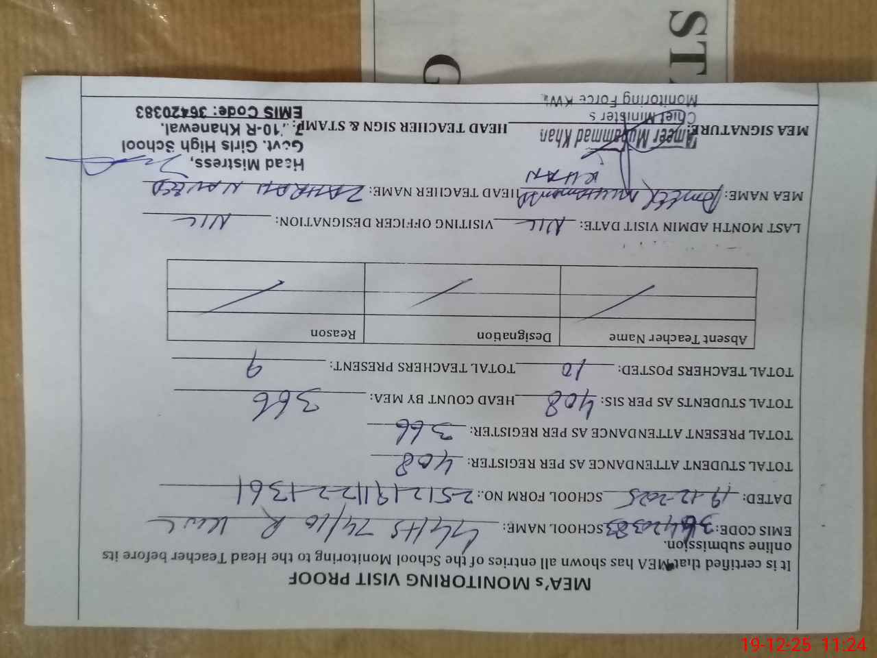 | EMIS Code: 36420383 | Name of School: GGHS 74/10-R, KHANEWAL | |||