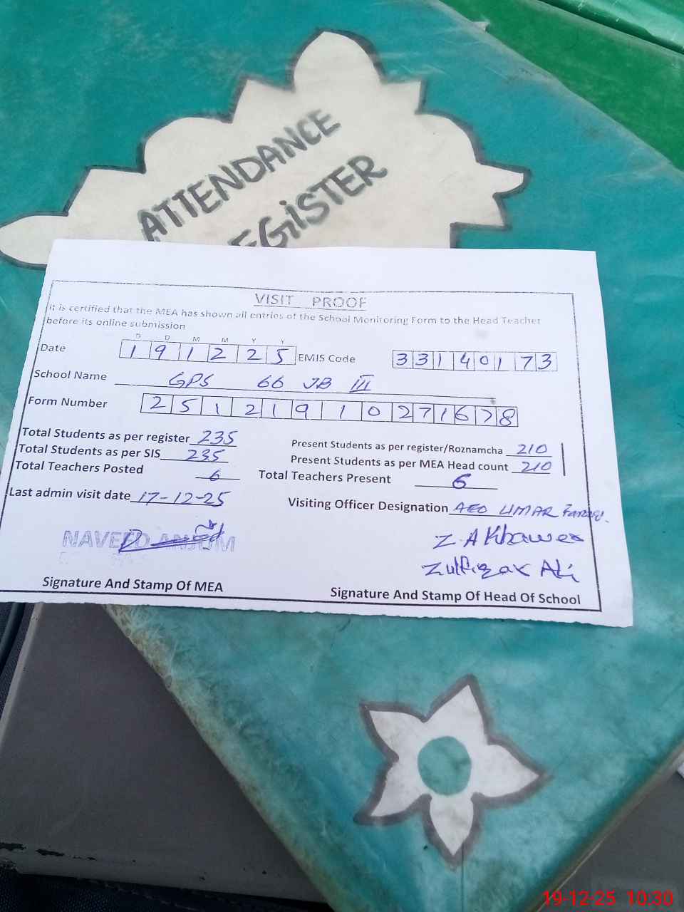 | EMIS Code: 33140173 | Name of School: GPS CHAK 66 JB III | |||