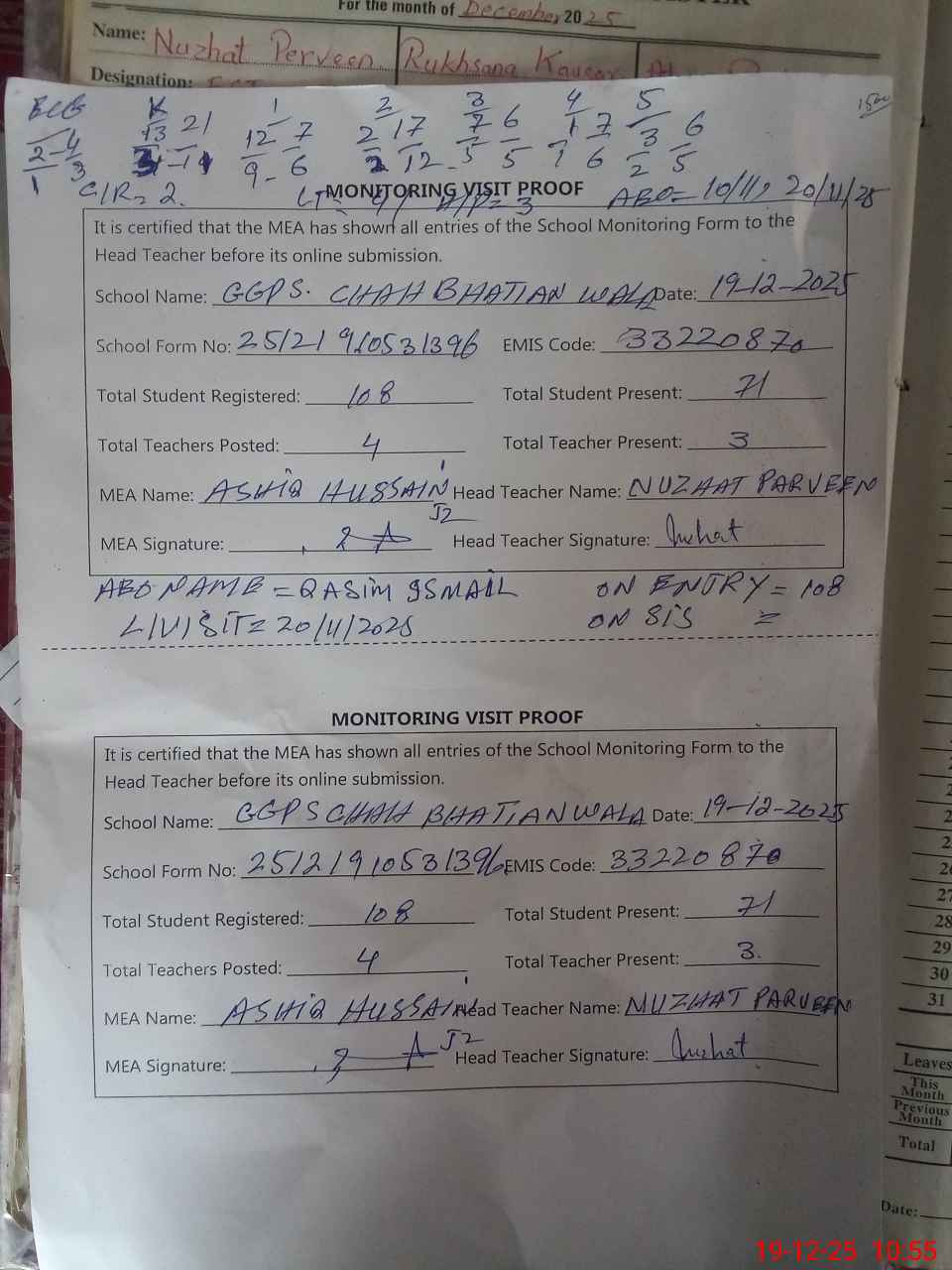 | EMIS Code: 33220870 | Name of School: GGPS CHAH BHATIAN WALA | |||