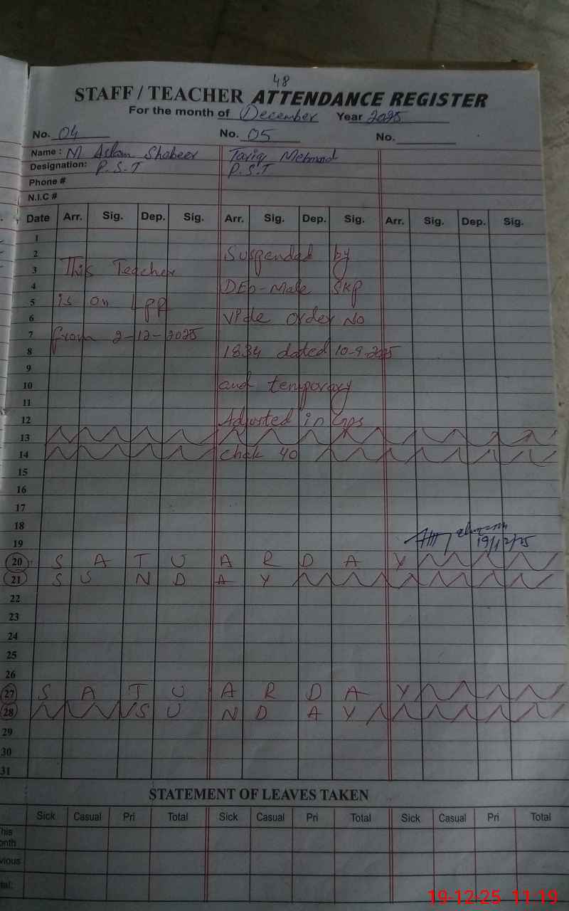 | Name: AL**** RA**** Designation: (School Headmaster's/Headmistress's) PST Phone/Cell Number: 03**** |