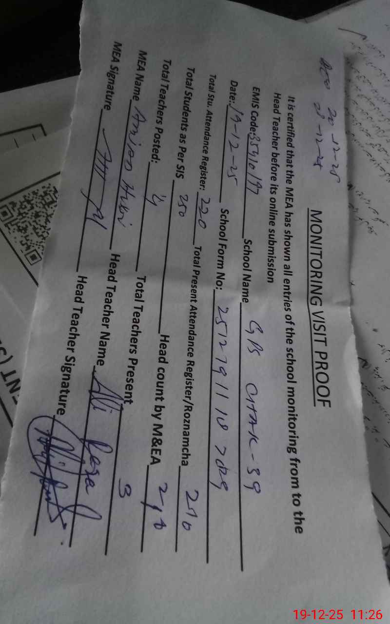 | EMIS Code: 35410197 | Name of School: GPS CHAK NO. 39 | |||