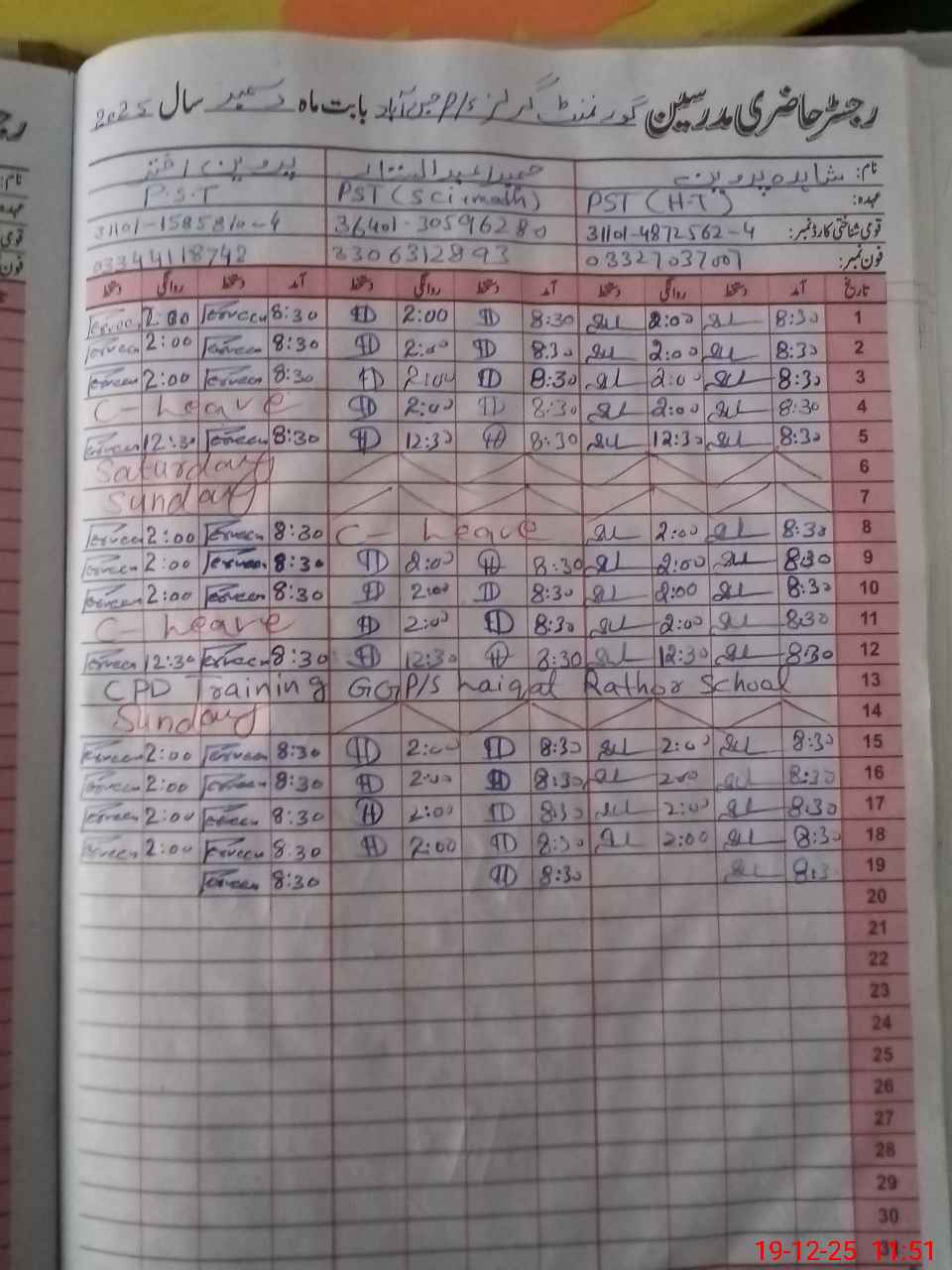 | Name: Sh**** Pa**** Designation: (School Headmaster's/Headmistress's) PST Phone/Cell Number: 03**** |