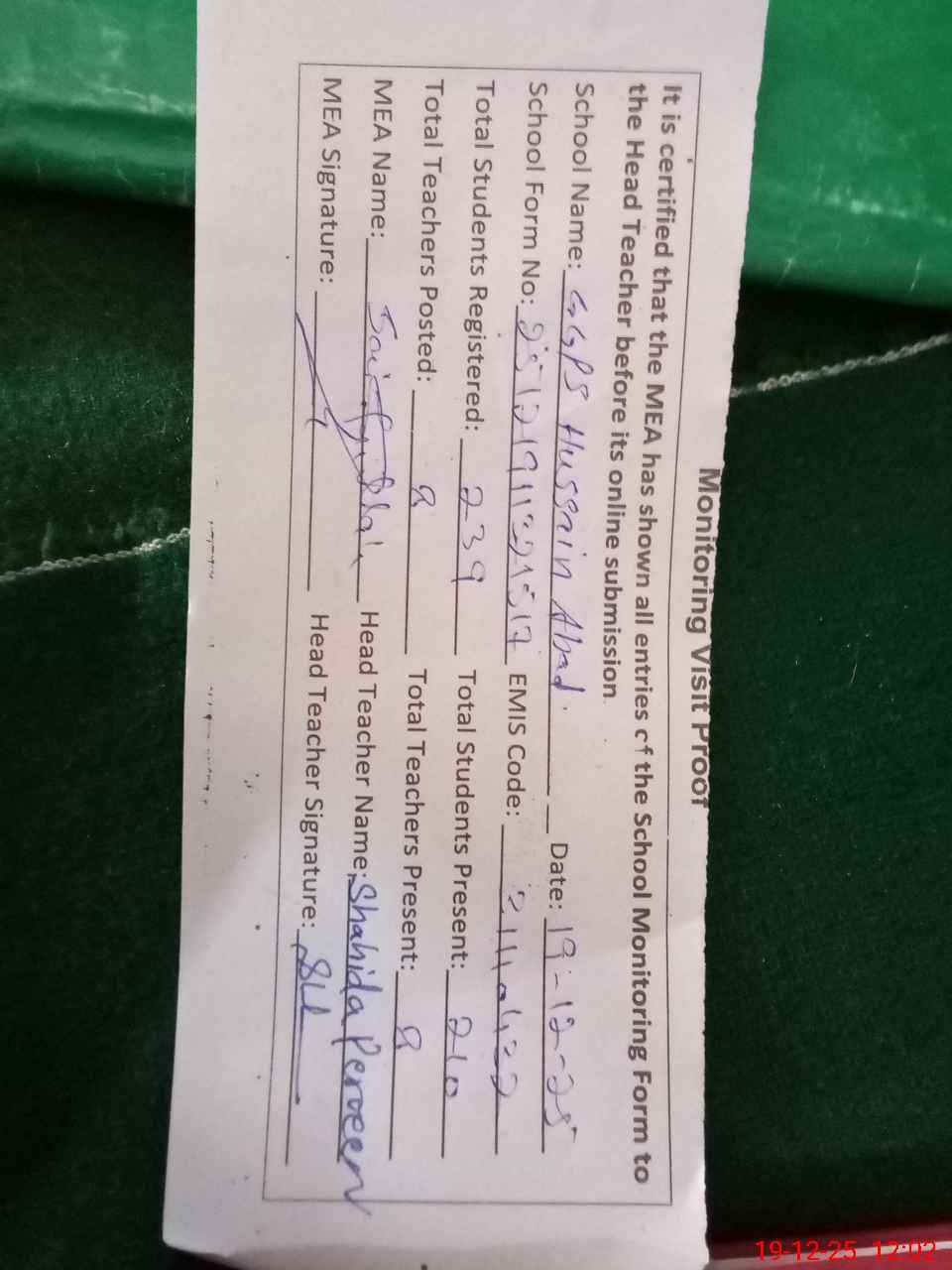 | EMIS Code: 31110432 | Name of School: GGPS HUSSAIN ABAD | |||