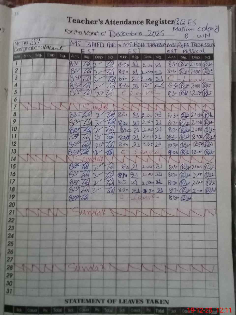 | EMIS Code: 31110420 | Name of School: GGES MUSLIM COLONY | |||