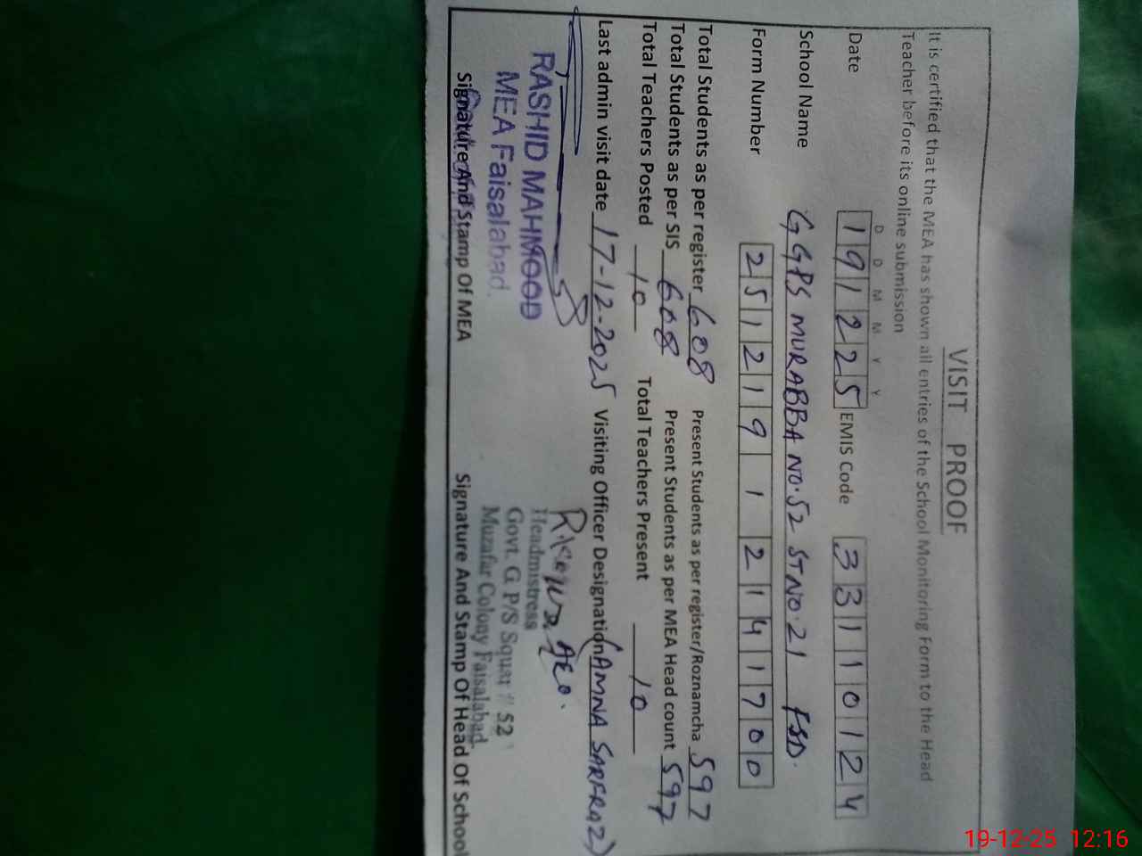 | EMIS Code: 33110124 | Name of School: GGES MURABBA NO. 52 ST. NO 21 | |||