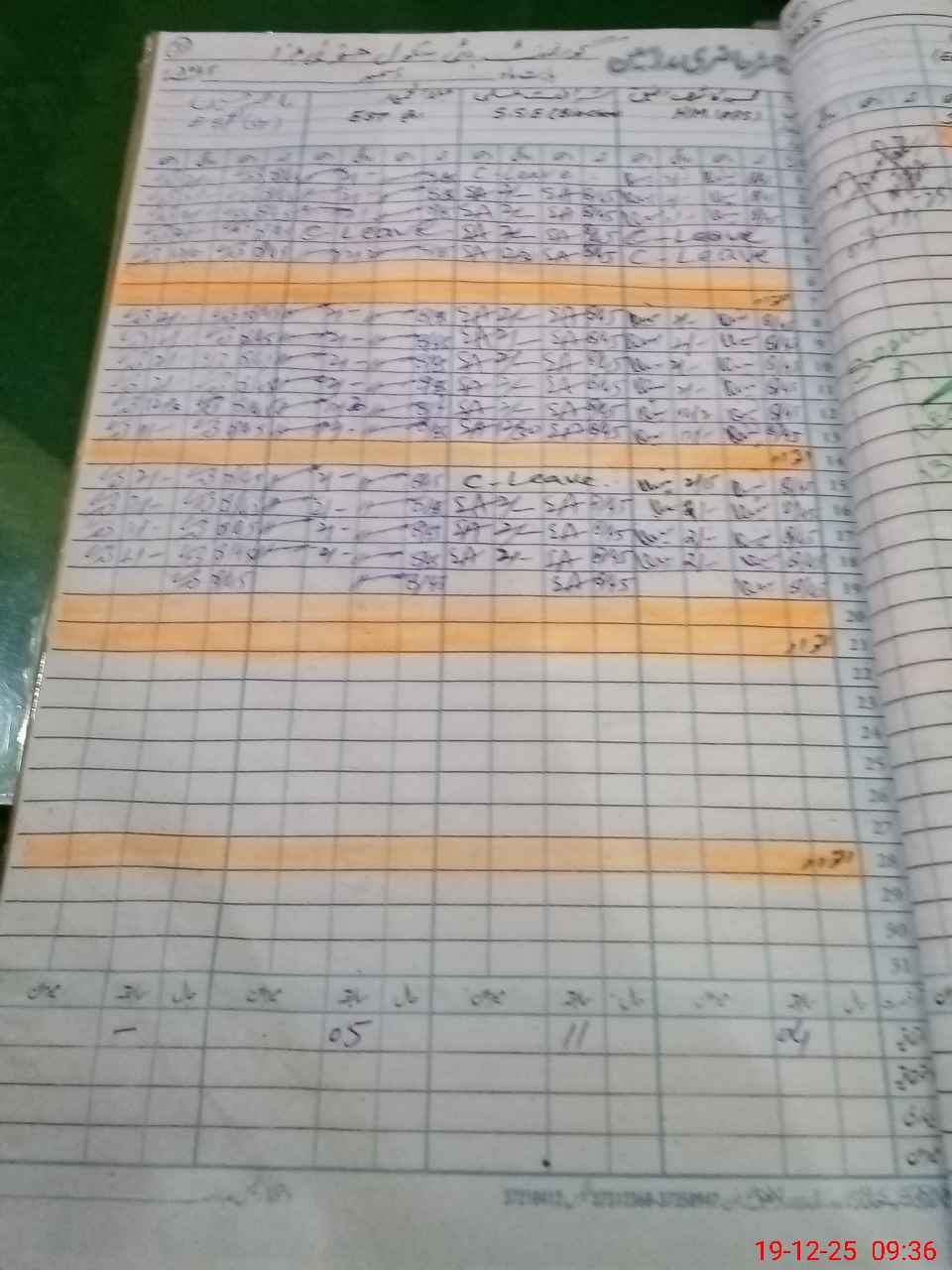 | CNIC | Full Name | Designation | R/C | Absence during last cal. month |