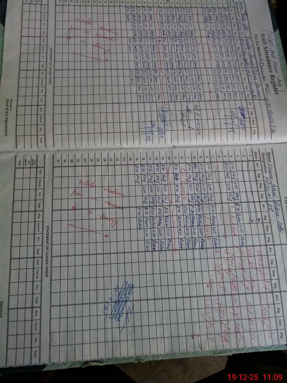 | CNIC | Full Name | Designation | R/C | Absence During Last Calender Month |