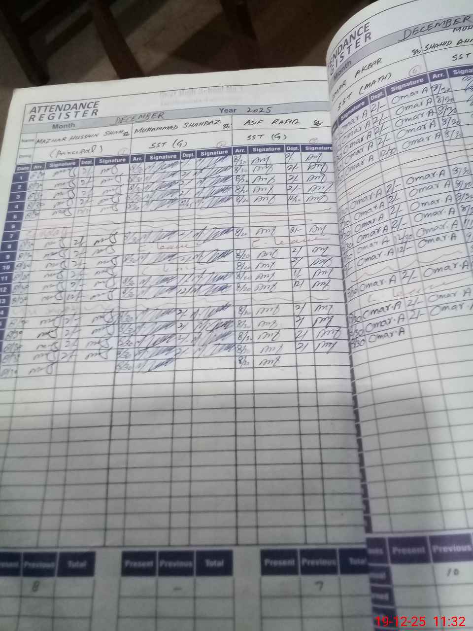 | CNIC | Full Name | Designation | R/C | Absence during last cal. month |
