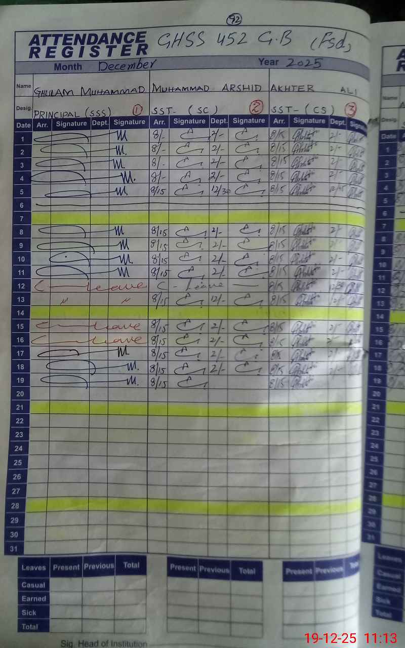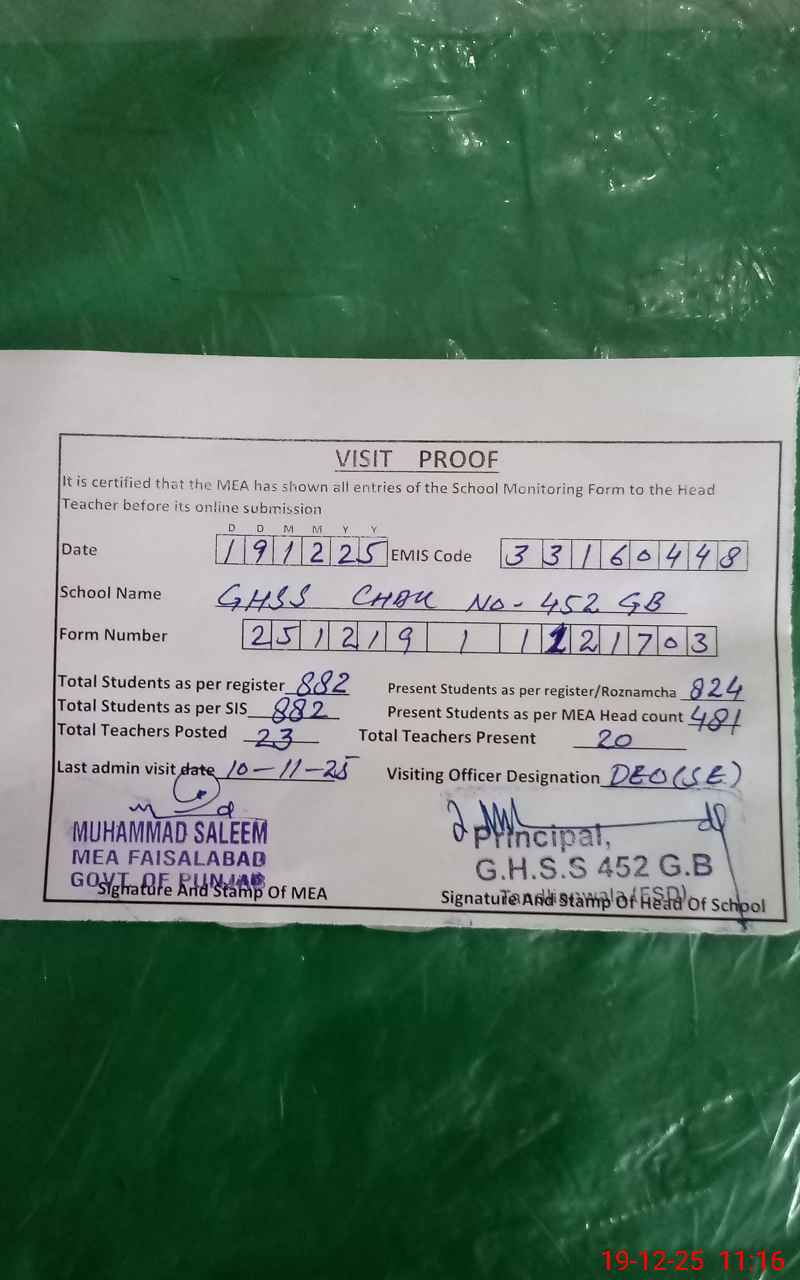 | EMIS Code: 33160448 | Name of School: GHSS CHAK NO.452 GB FSD | |||