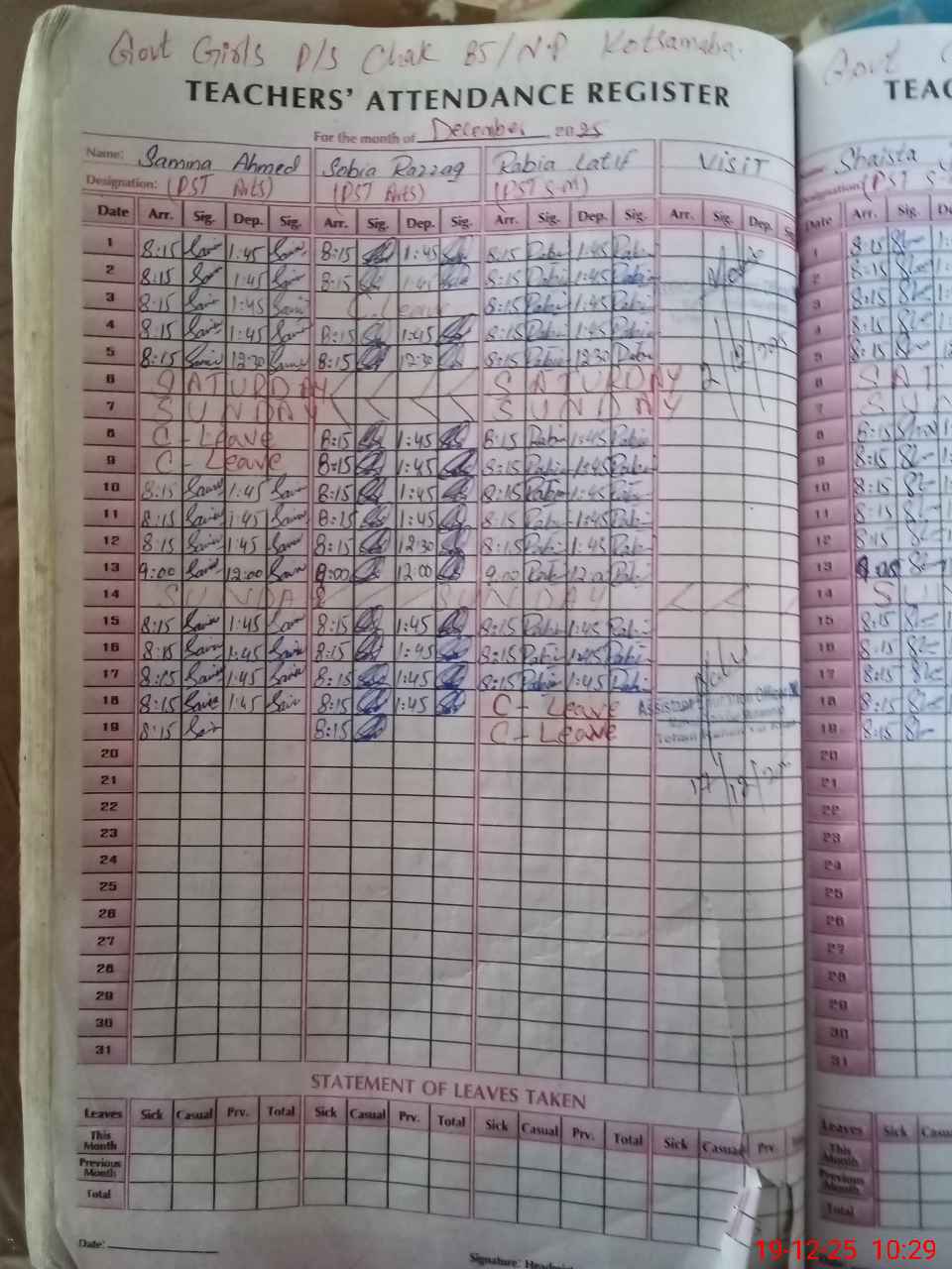 | 31**** | Ha**** Im**** | NAIB QASID | 0 | 0 | 0 | 0 | 0 | 0 | 0 | 0 | 0 | Absent (Un-Authorized) | |