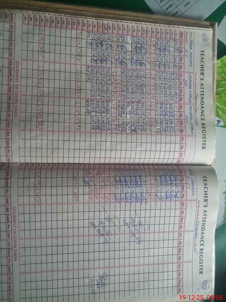 | CNIC | Full Name | Designation | R/C | Absence During Last Calender Month |