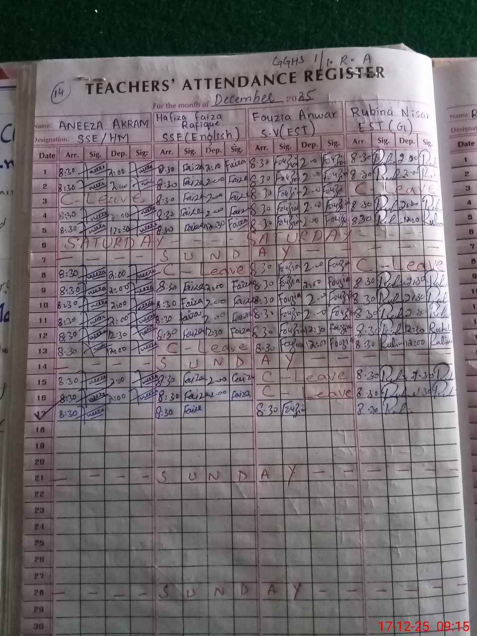 | 35**** | Sa**** Sh**** | EST Science | Regular | 0 | 0 | 0 | 0 | 0 | 0 | 0 | 0 | 0 | Casual |