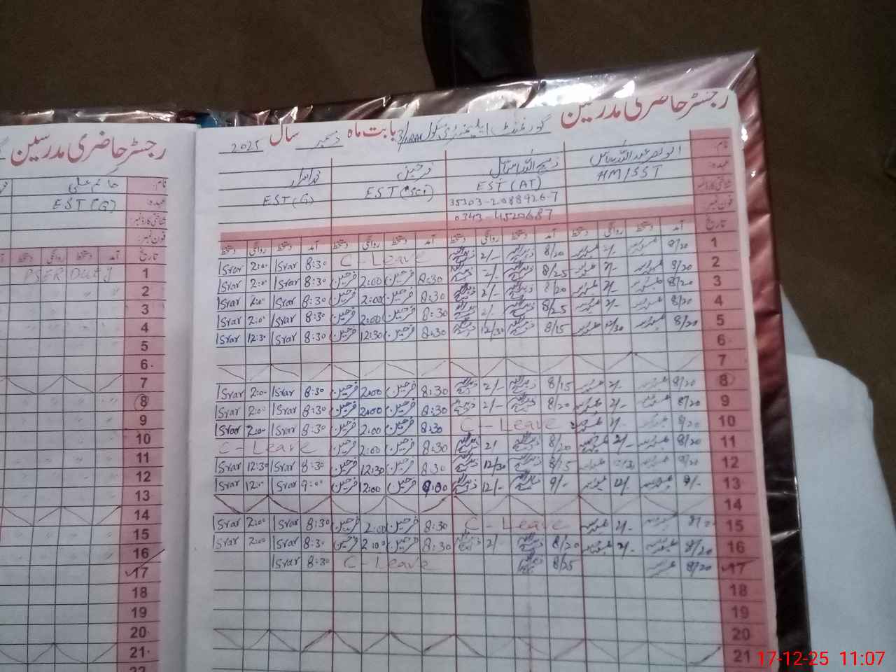 | CNIC | Full Name | Designation | R/C | Absence During Last Calender Month |