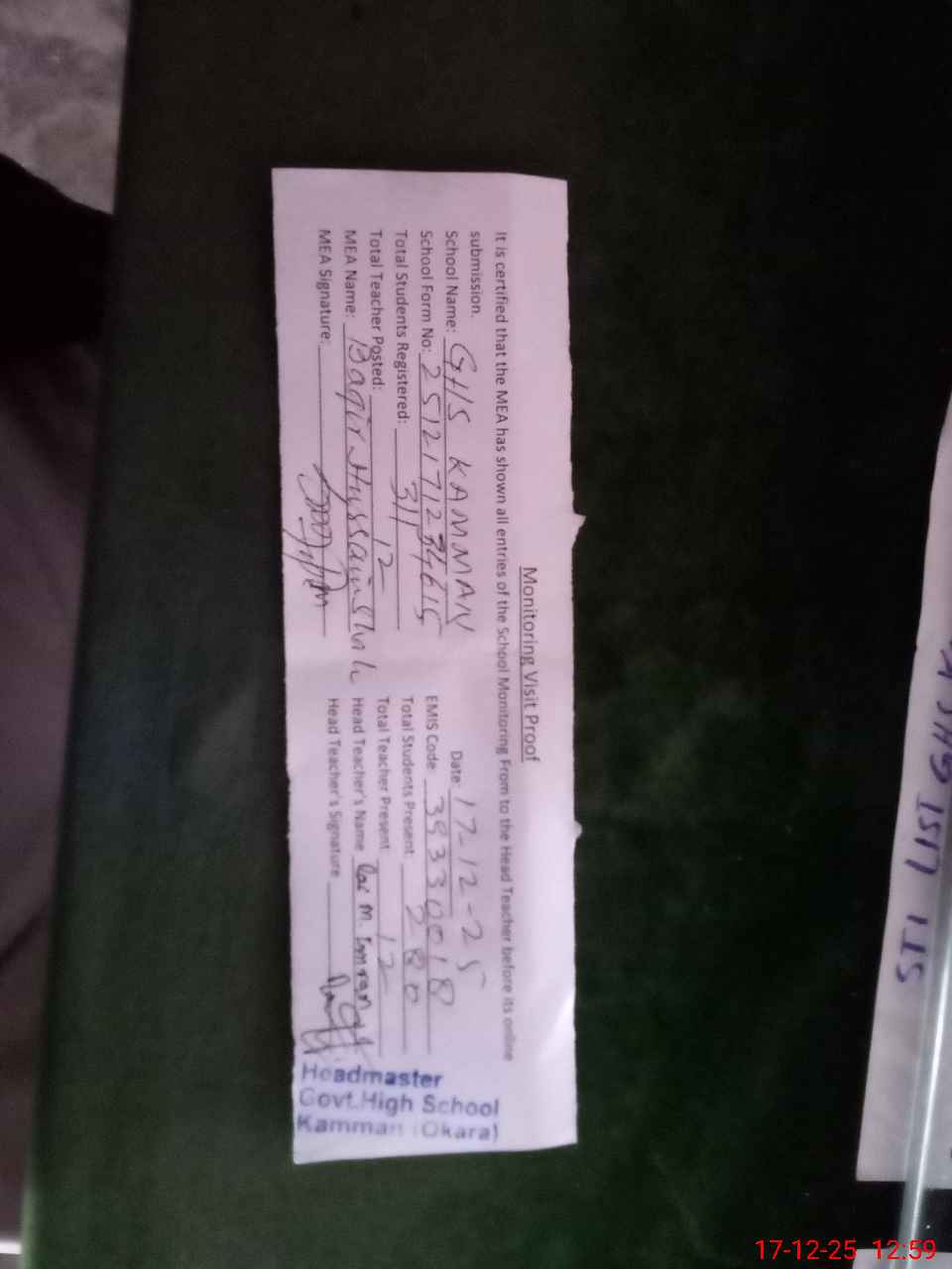 | EMIS Code: 39330018 | Name of School: GHS KAMMAN | |||