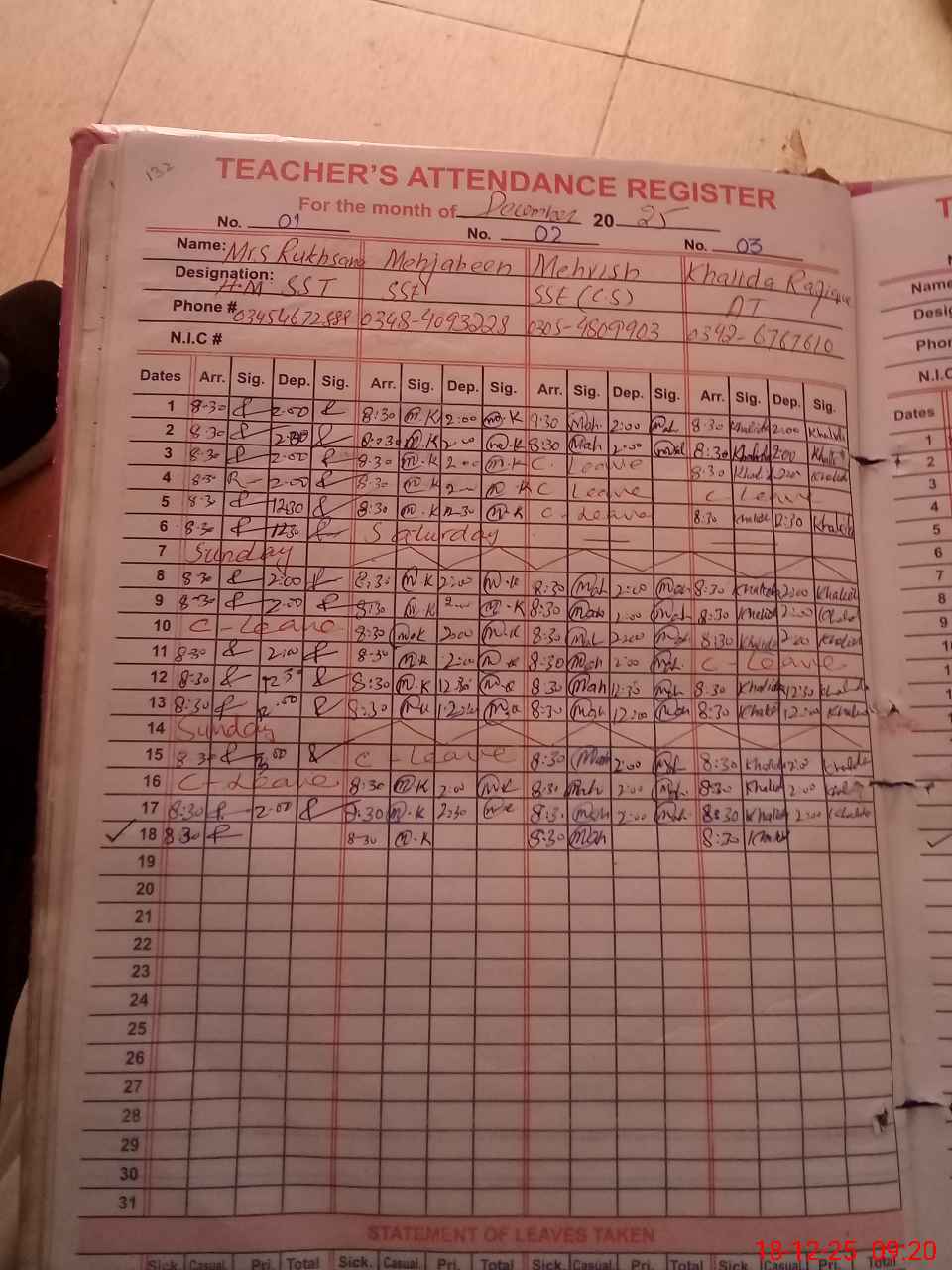 | Name: RU**** KH**** Designation: (School Headmaster's/Headmistress's) SST Arts Phone/Cell Number: 03**** |