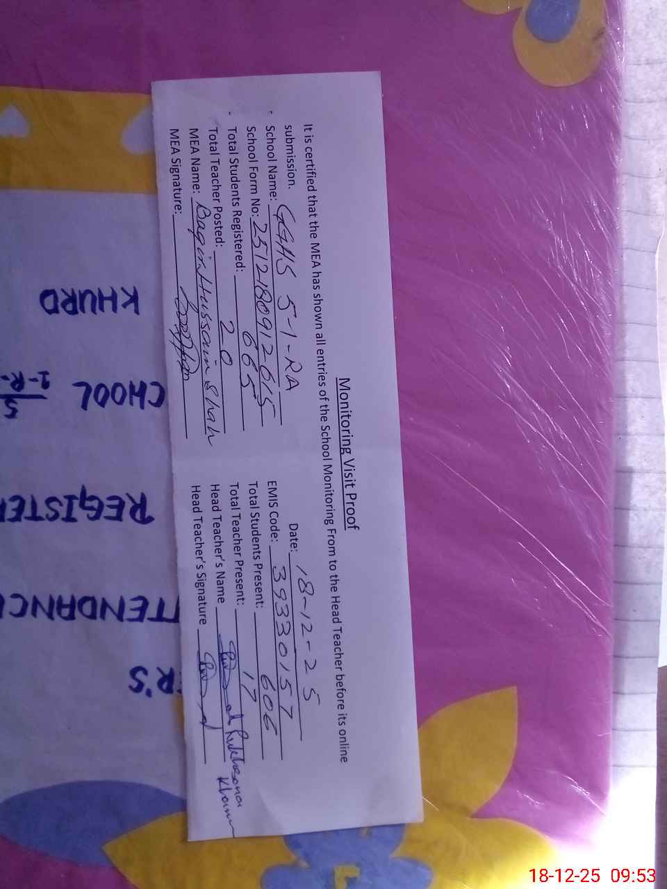 | EMIS Code: 39330157 | Name of School: GGHS CHAK NO. 5-1/RA | |||