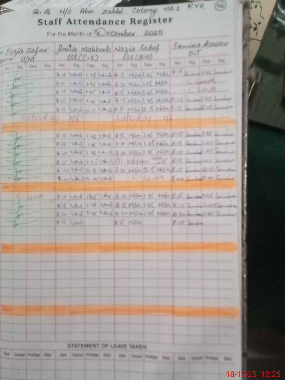 | Leave | Duty | Absent | Maternity | Medical | Ex- Pak |