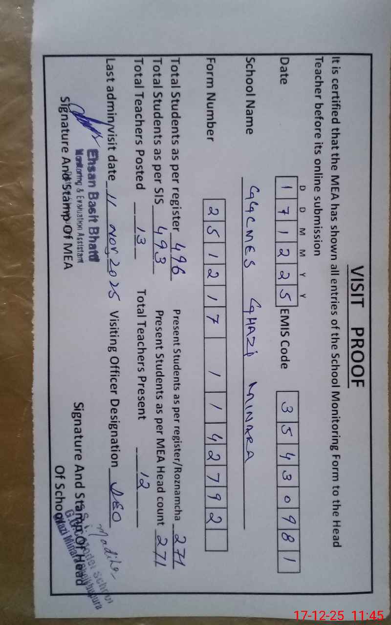 | EMIS Code: 35430981 | Name of School: GGCMES GHAZI MINARA | |||