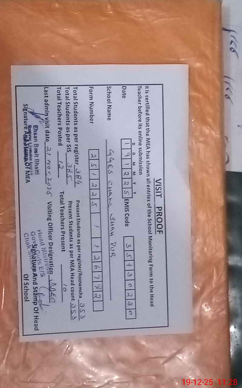| EMIS Code: 35430230 | Name of School: GGES CHAK SHAHPUR | |||