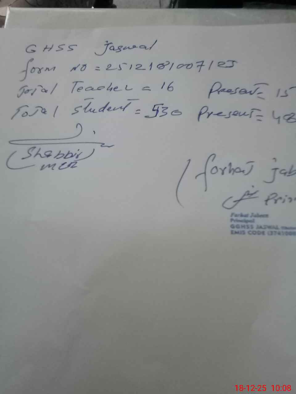 | Name: Fa**** Ja**** Designation: (School Headmaster's/Headmistress's) PRINCIPAL Phone/Cell Number: 03**** |