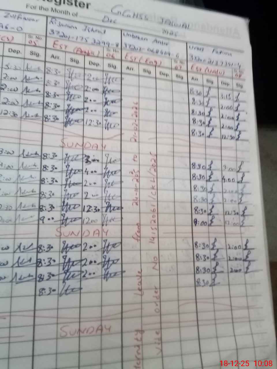 | Monitoring Date: 18-12-2025 | Start Time: 18-12-2025 09:06 AM | End Time: 18-12-2025 10:10 AM | Name of MEA: Sh**** Hu**** | |