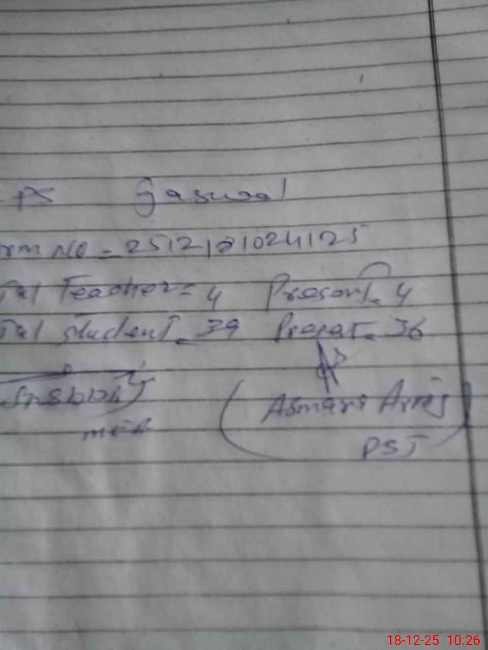 | Monitoring Date: 18-12-2025 | Start Time: 18-12-2025 10:10 AM | End Time: 18-12-2025 10:27 AM | Name of MEA: Sh**** Hu**** | |