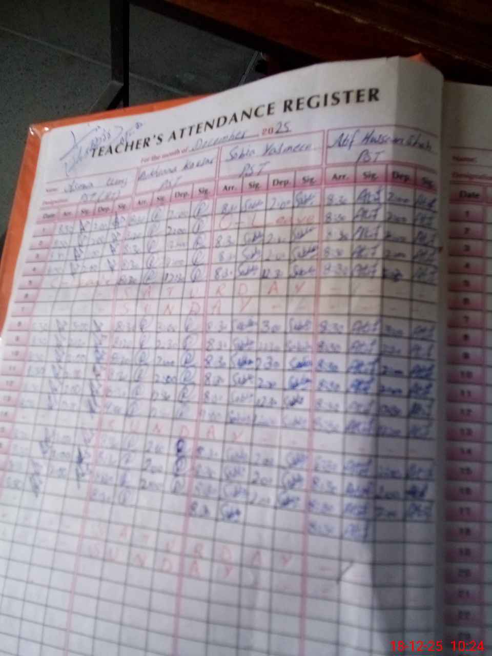 | CNIC | Full Name | Designation | R/C | Absence During Last Calender Month |