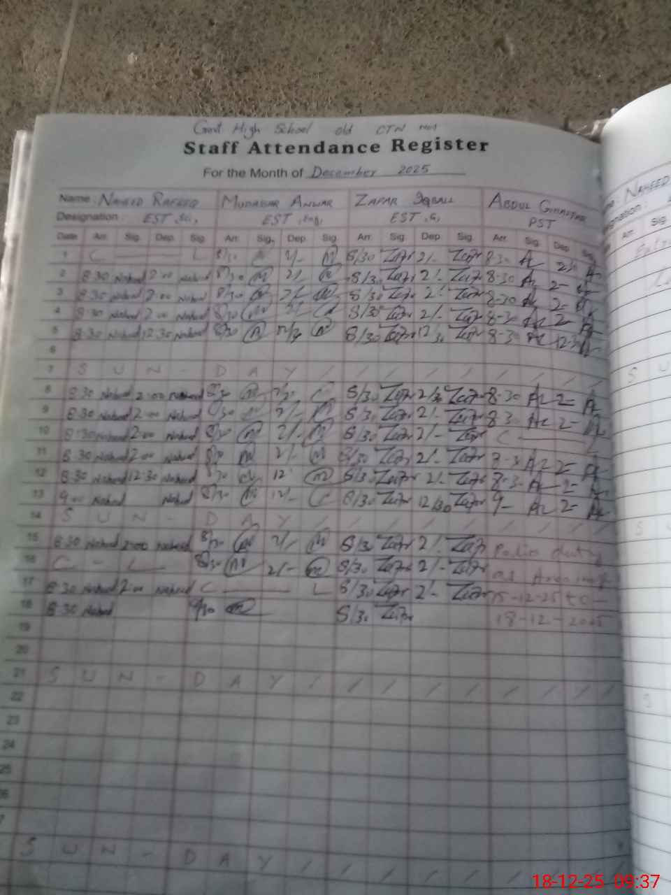 | CNIC | Full Name | Designation | R/C | Absence during last cal. month |