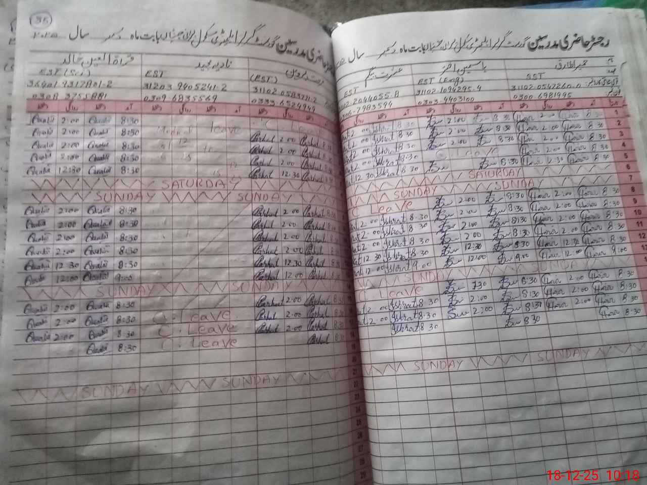 | CNIC | Full Name | Designation | R/C | Absence During Last Calender Month |
