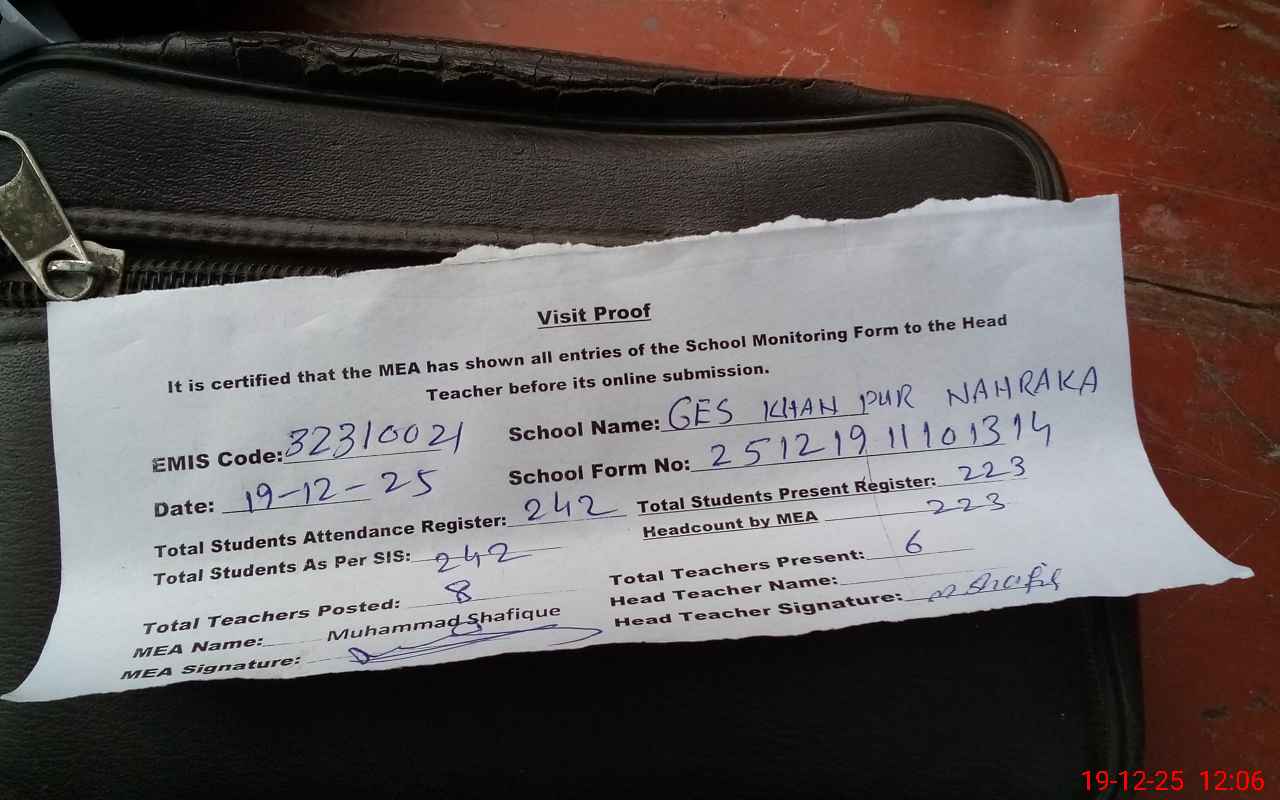 | EMIS Code: 32310021 | Name of School: GES KHAN PUR NAHRAKA | |||