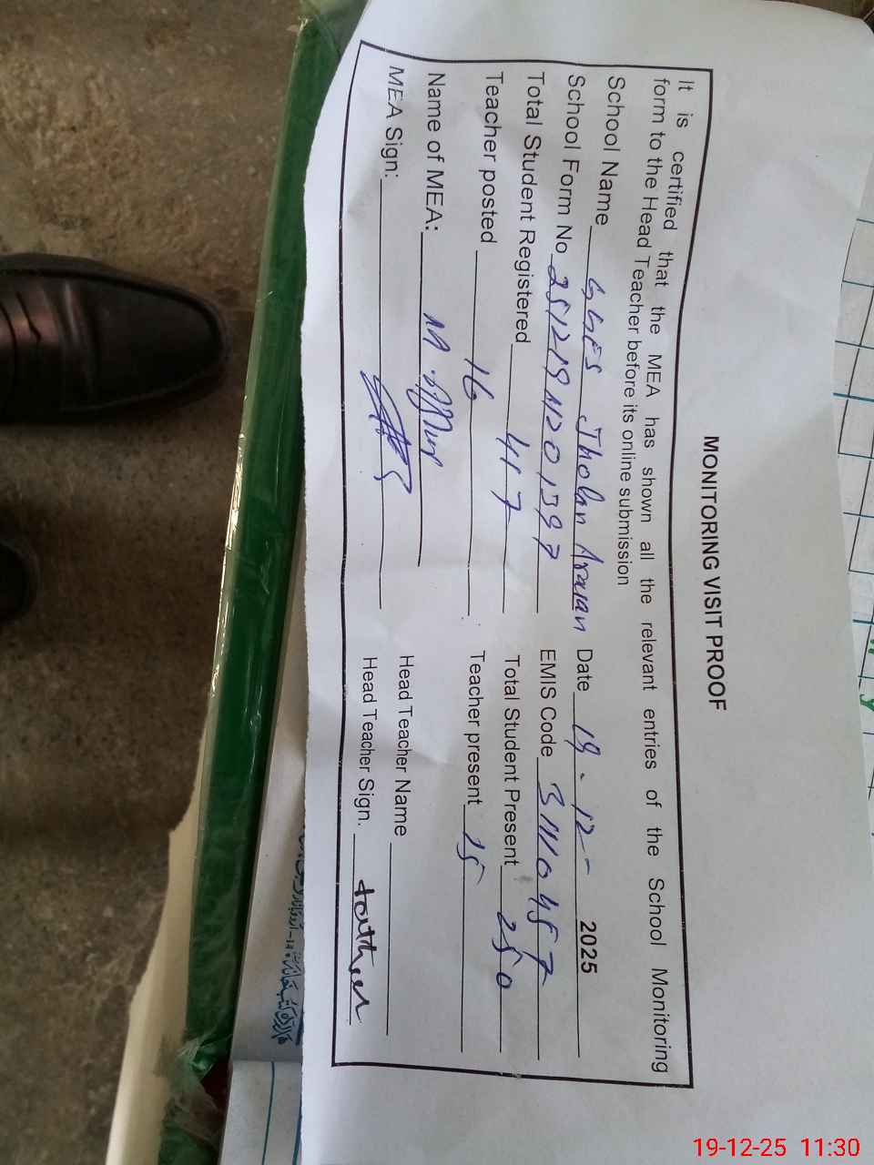 | EMIS Code: 31110457 | Name of School: GGES JHOLAN ARAIAN | |||