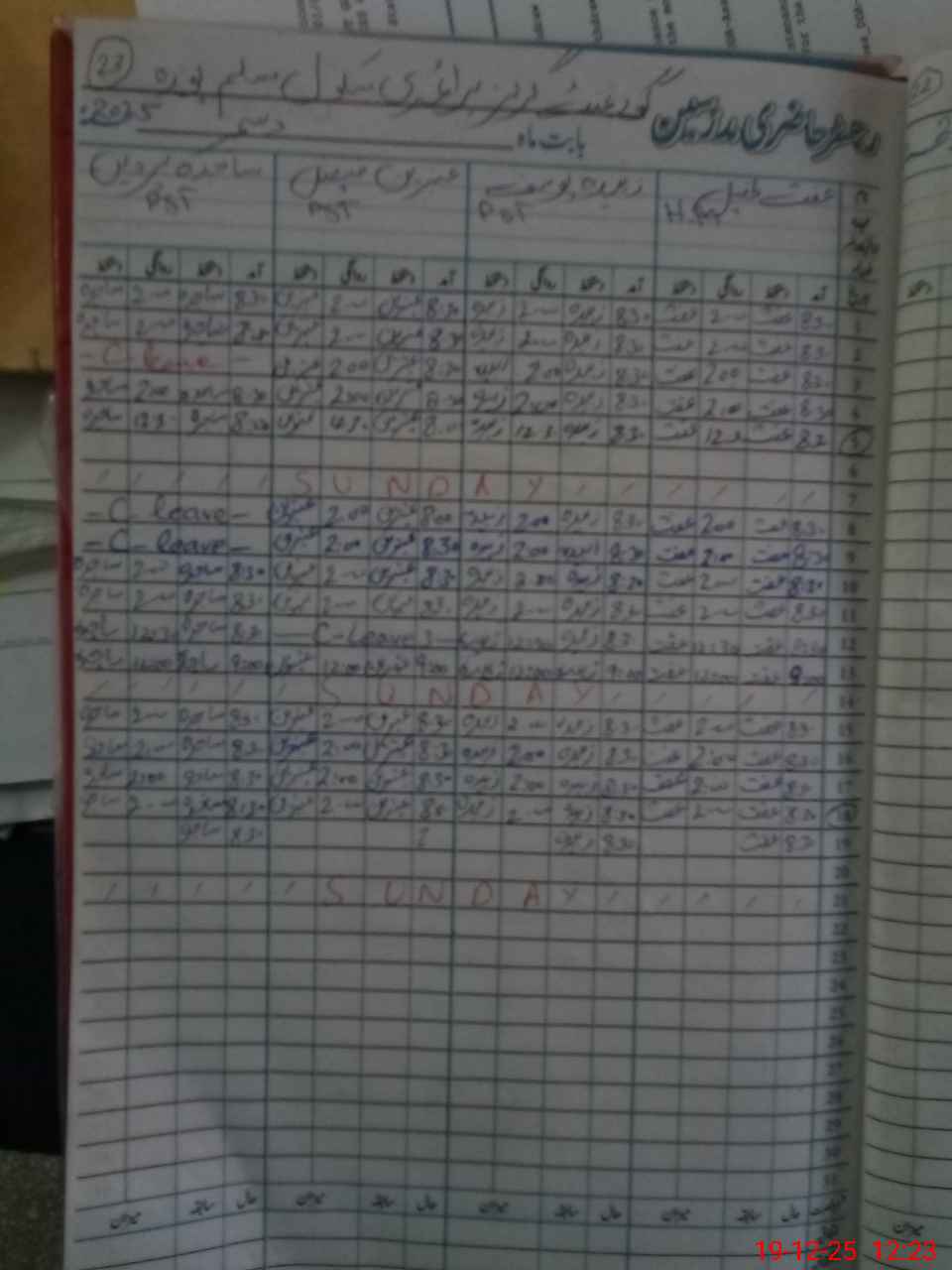 | CNIC | Full Name | Designation | R/C | Absence During Last Calender Month |