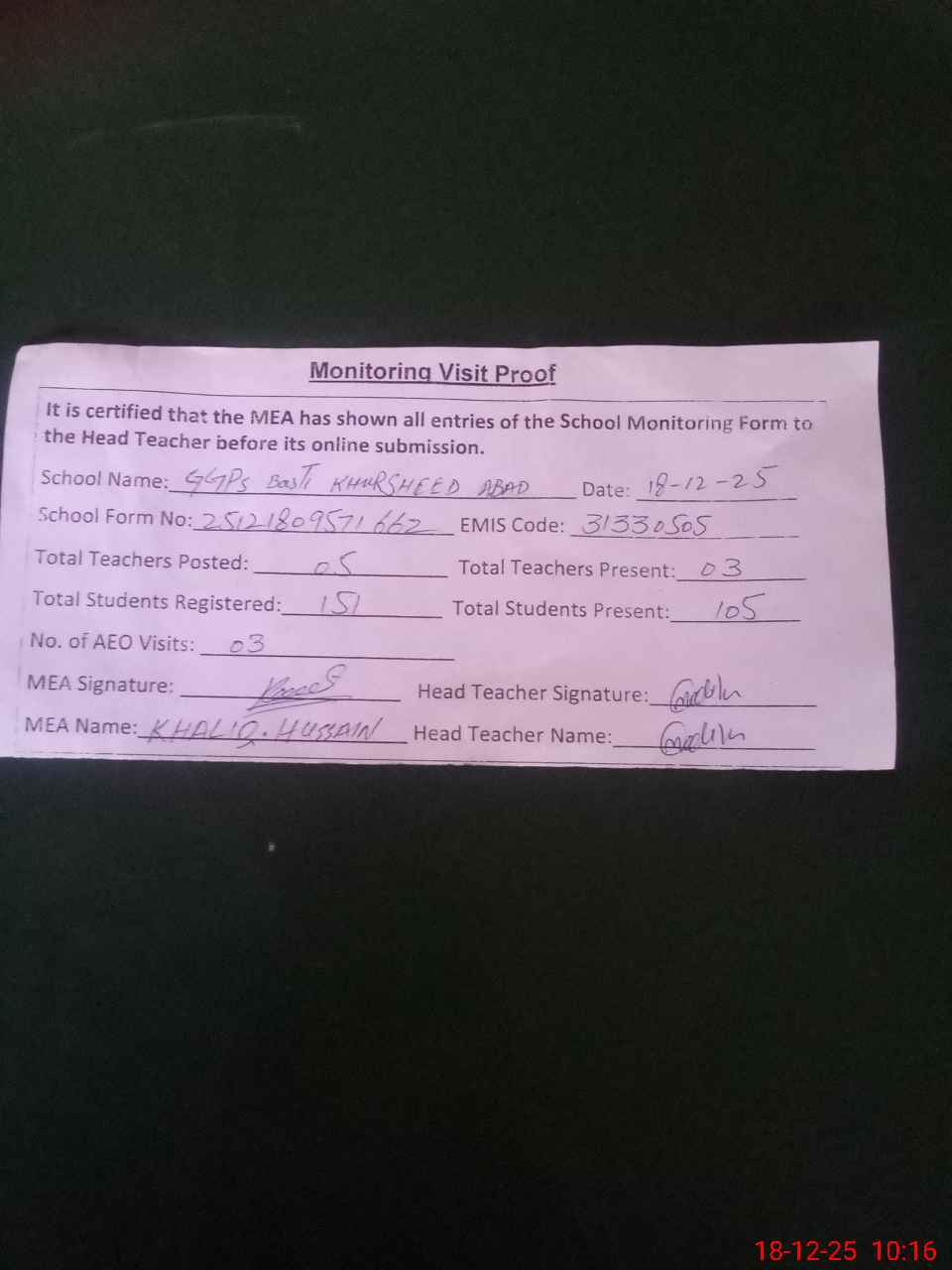 | EMIS Code: 31330505 | Name of School: GGPS BASTI KHURSHEED ABAD | |||