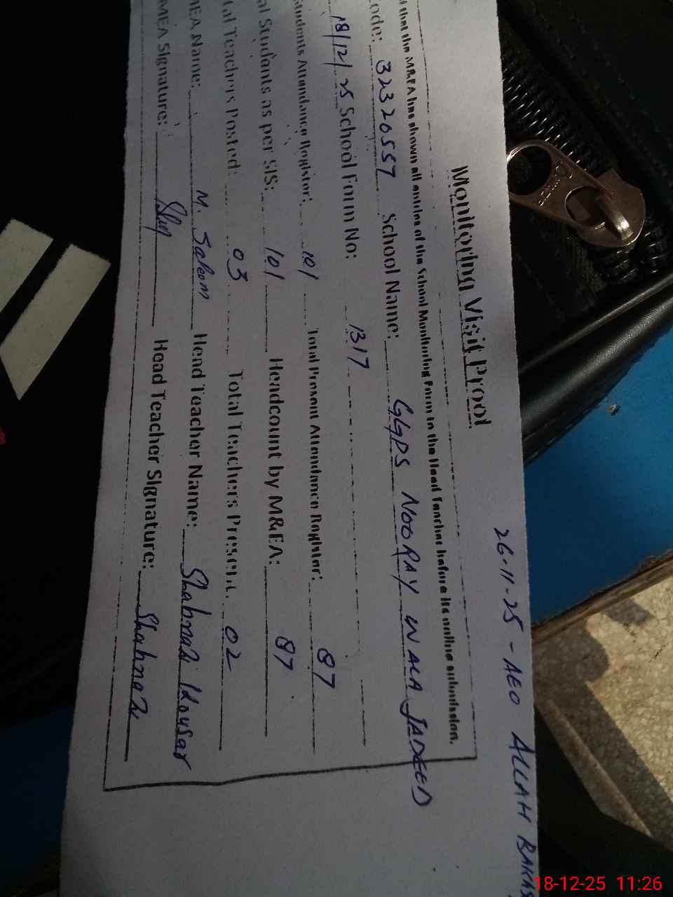 | EMIS Code: 32320557 | Name of School: GGPS NOORAY WALA JADEED | |||